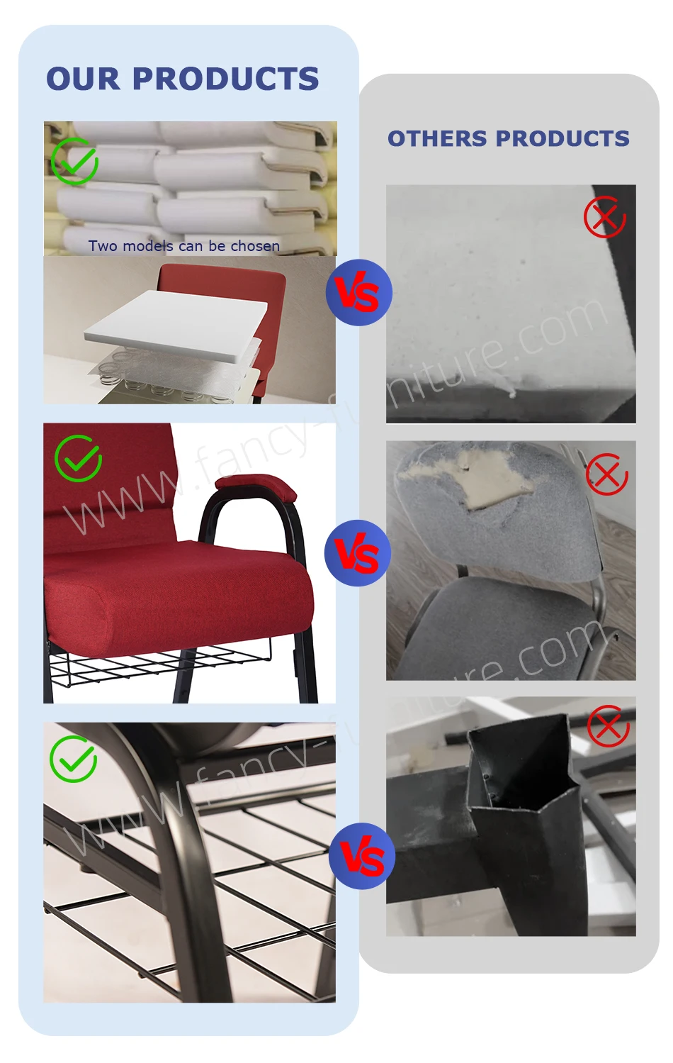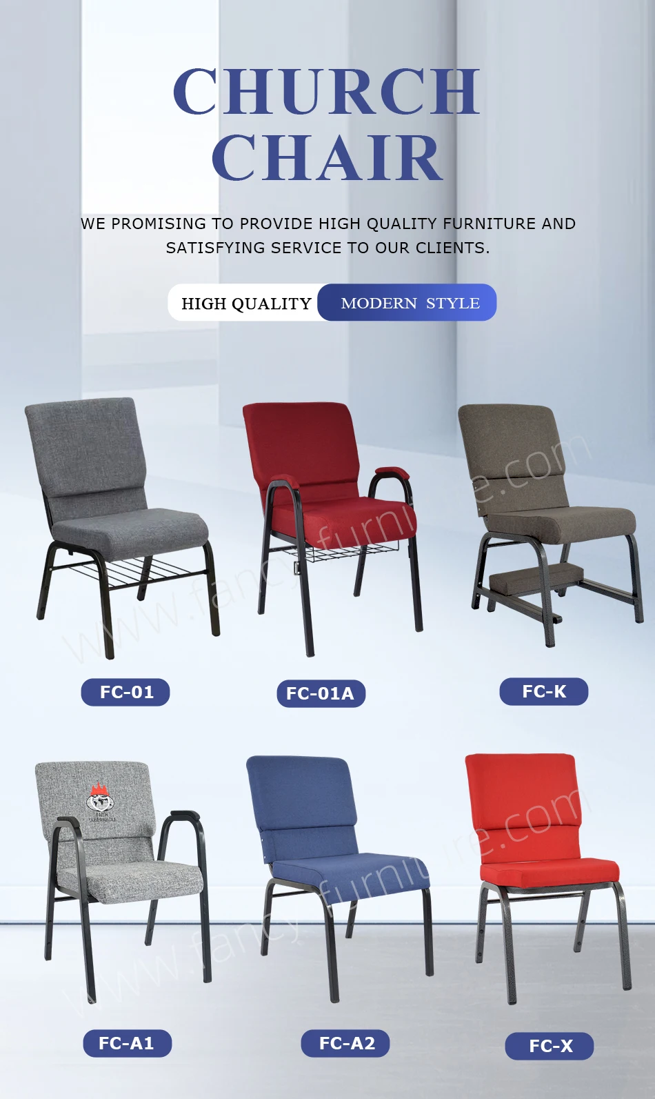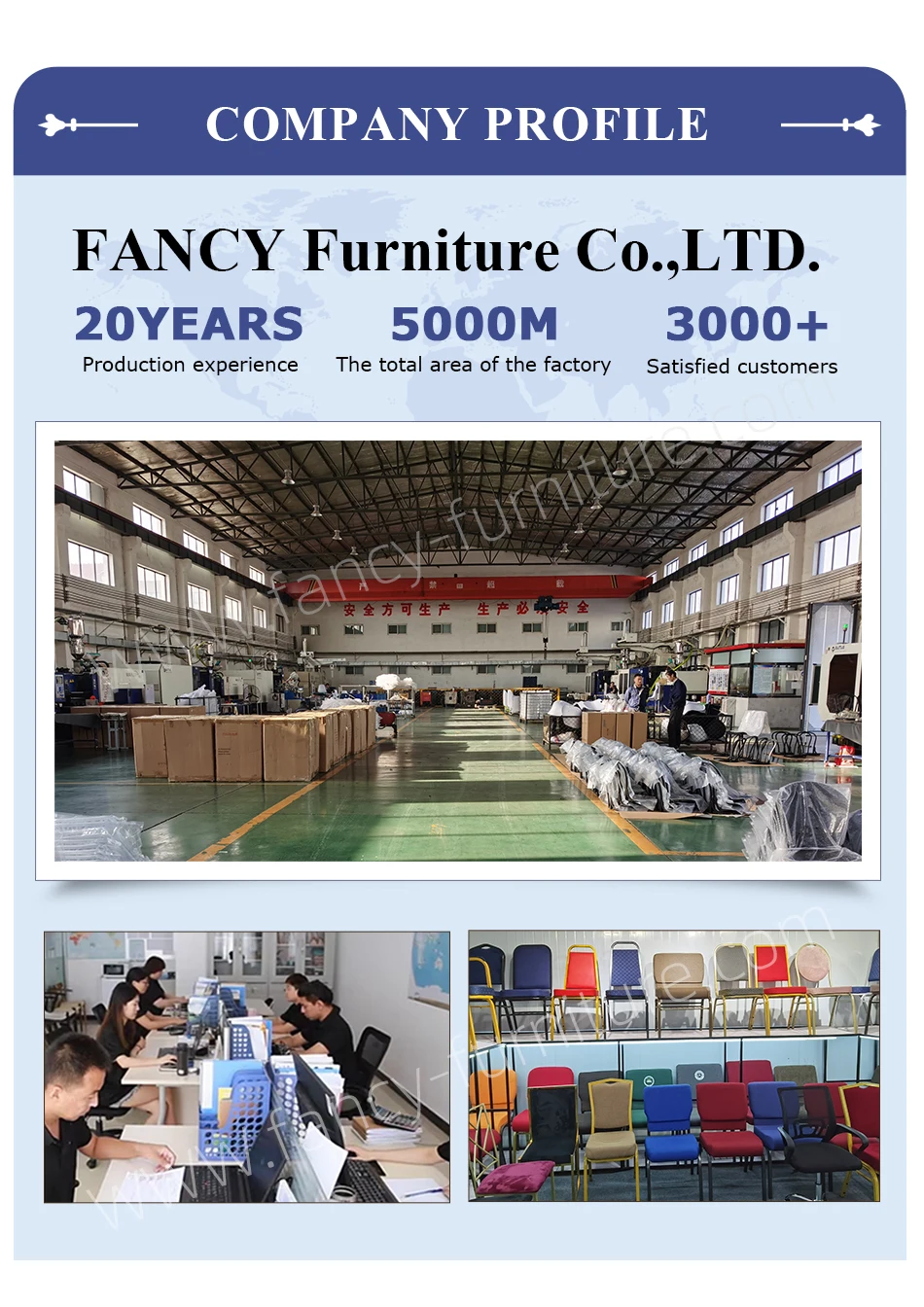 "Fancy Furniture" is professional company to furniture in North of China.The main products include: Plastic chairs and dining tables,Banquet chairs,church chairs,metal bar chairs etc.