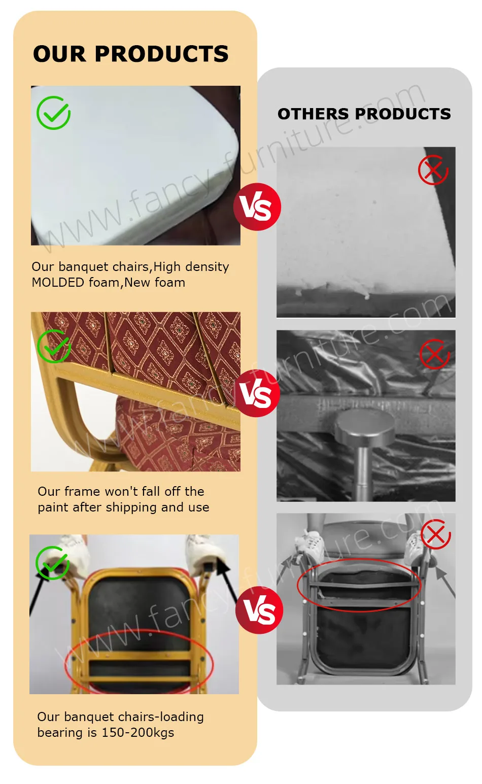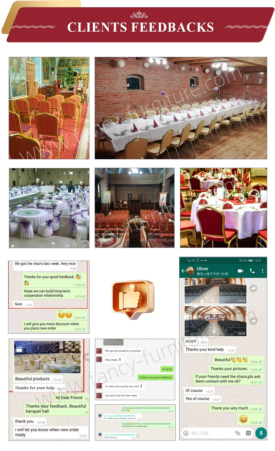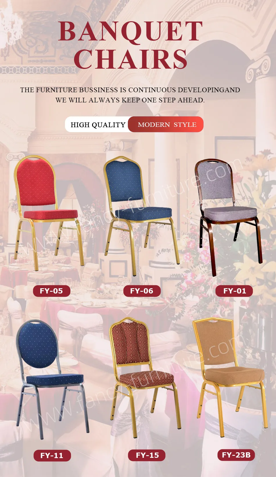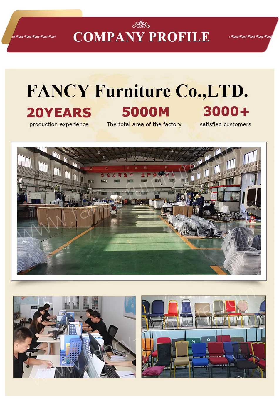 "Fancy Furniture" is professional company to furniture in North of China.The main products include: Plastic chairs and dining tables,Banquet chairs,church chairs,metal bar chairs etc.